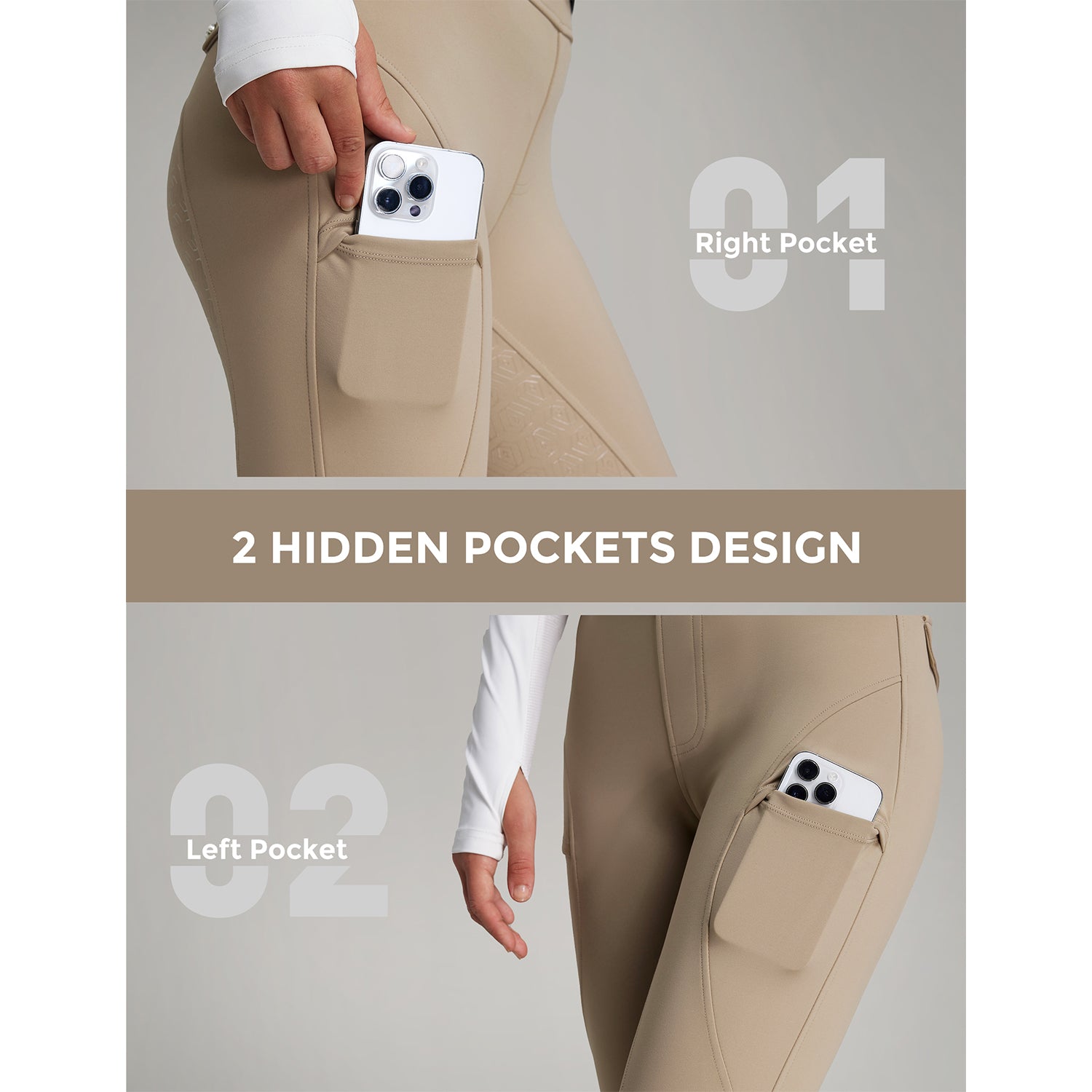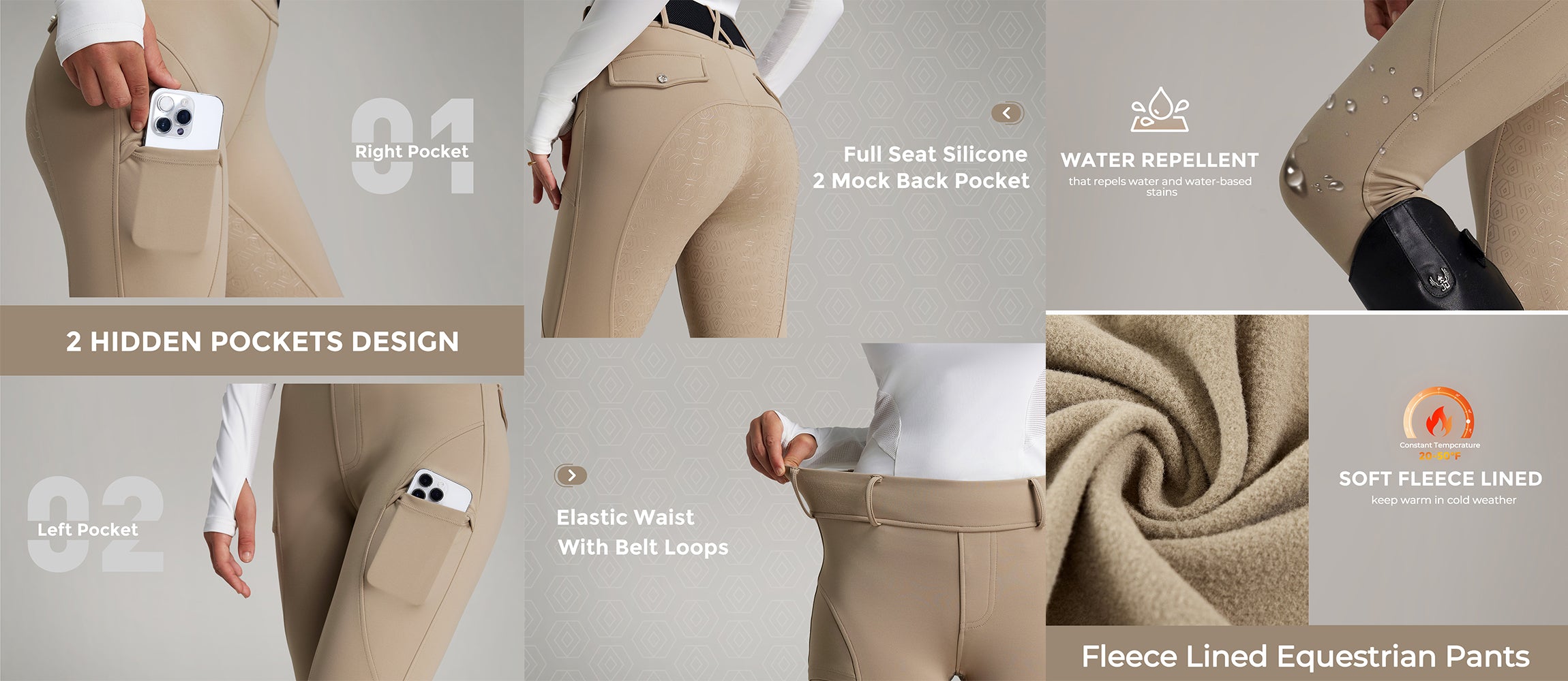 Women Fleece Lined Full Seat Breeches Faux Back Pockets