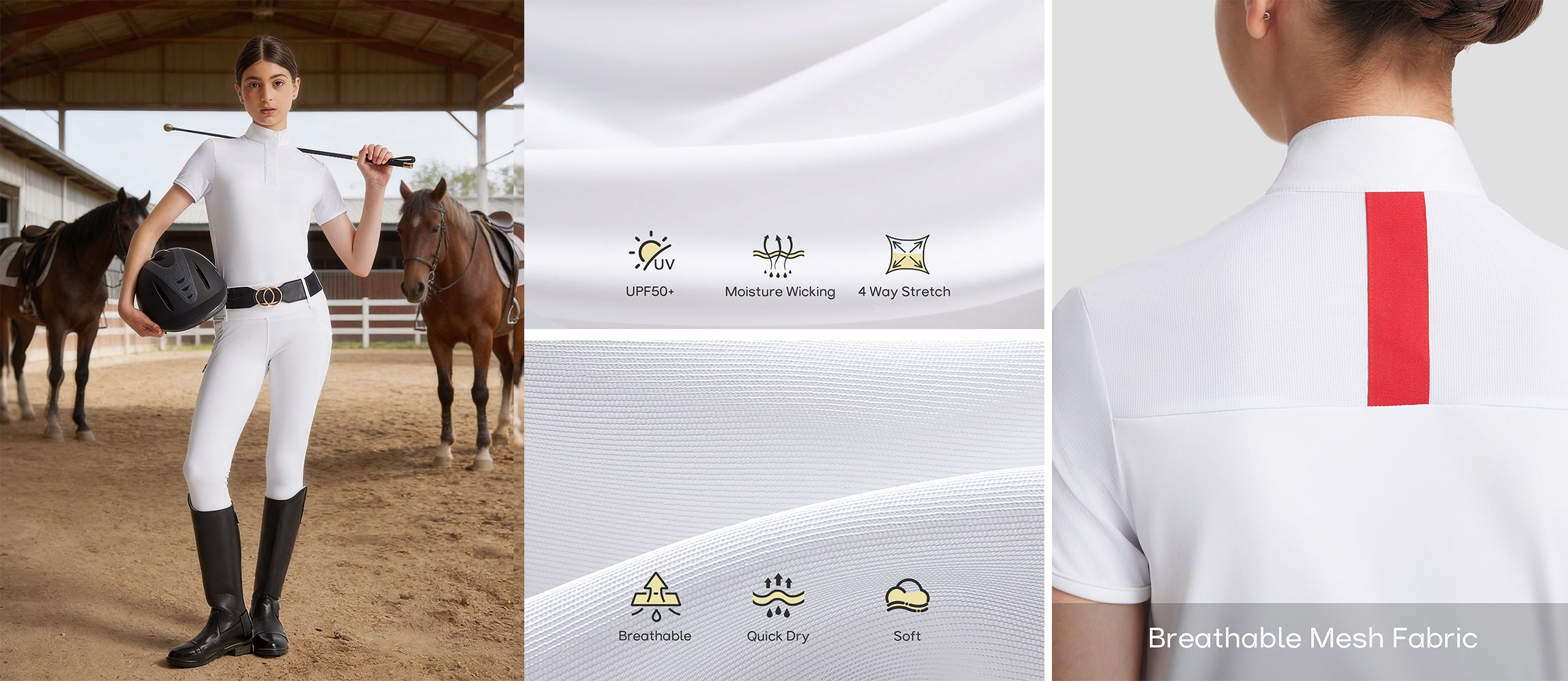 - Quick-drying comfort during horse riding