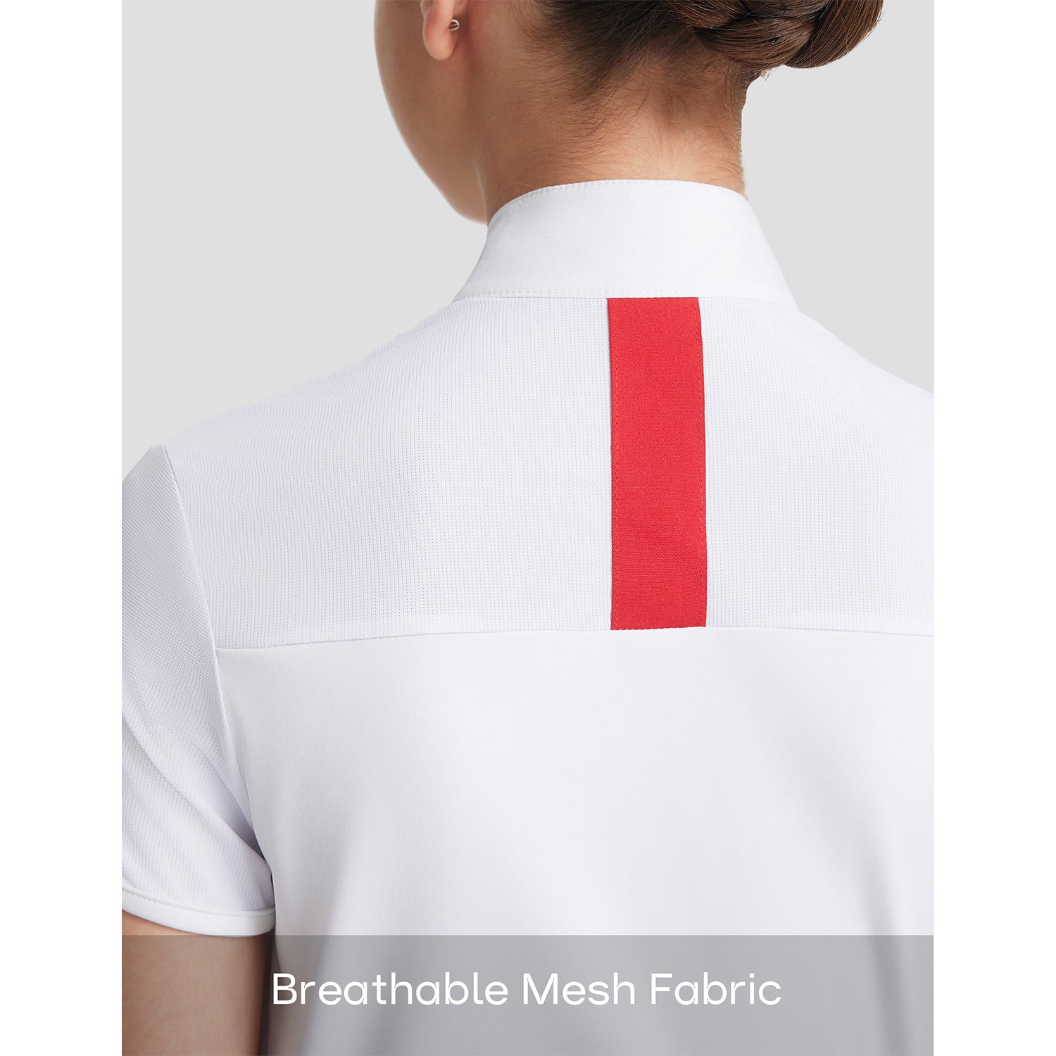 - Mesh fabric at the underarms and the upper back for superior ventilation