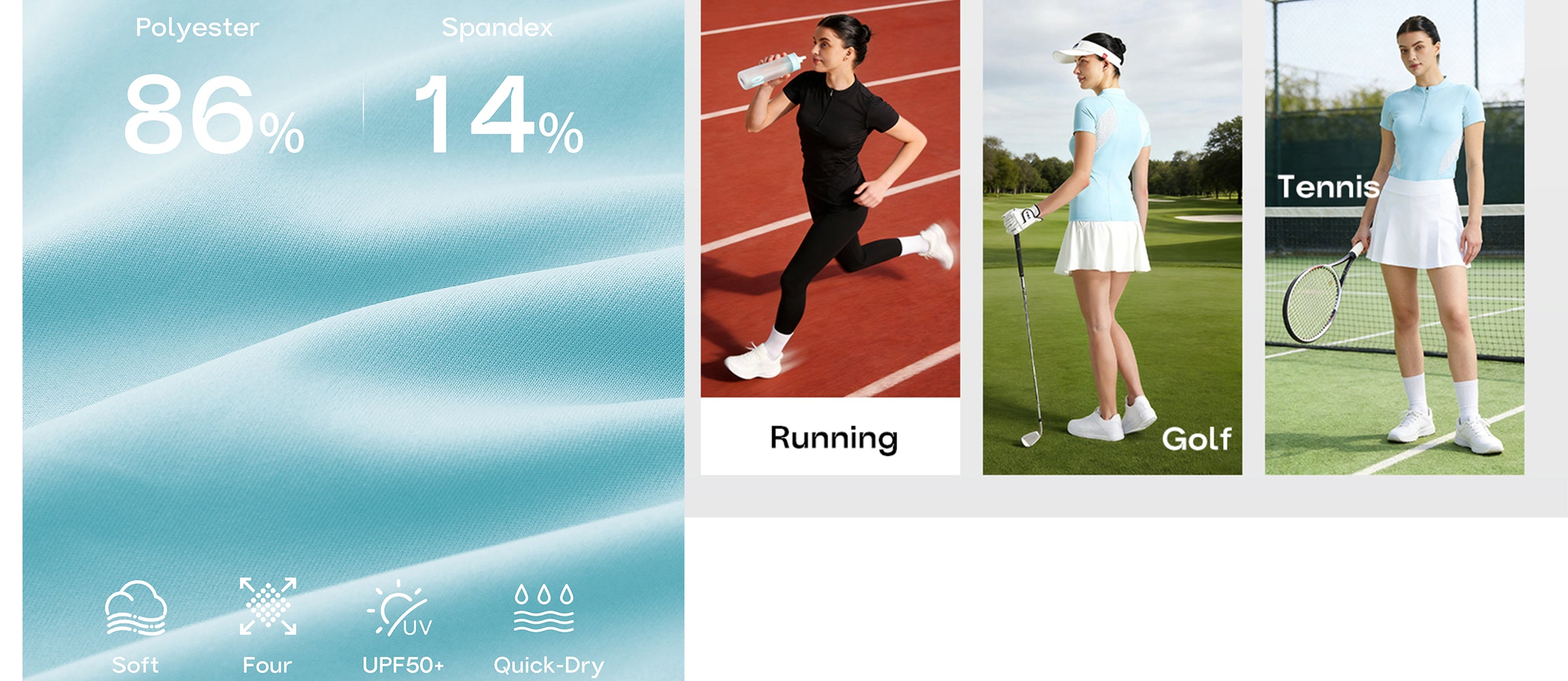- 4-way stretch fabric for breathable, moisture-wicking comfort